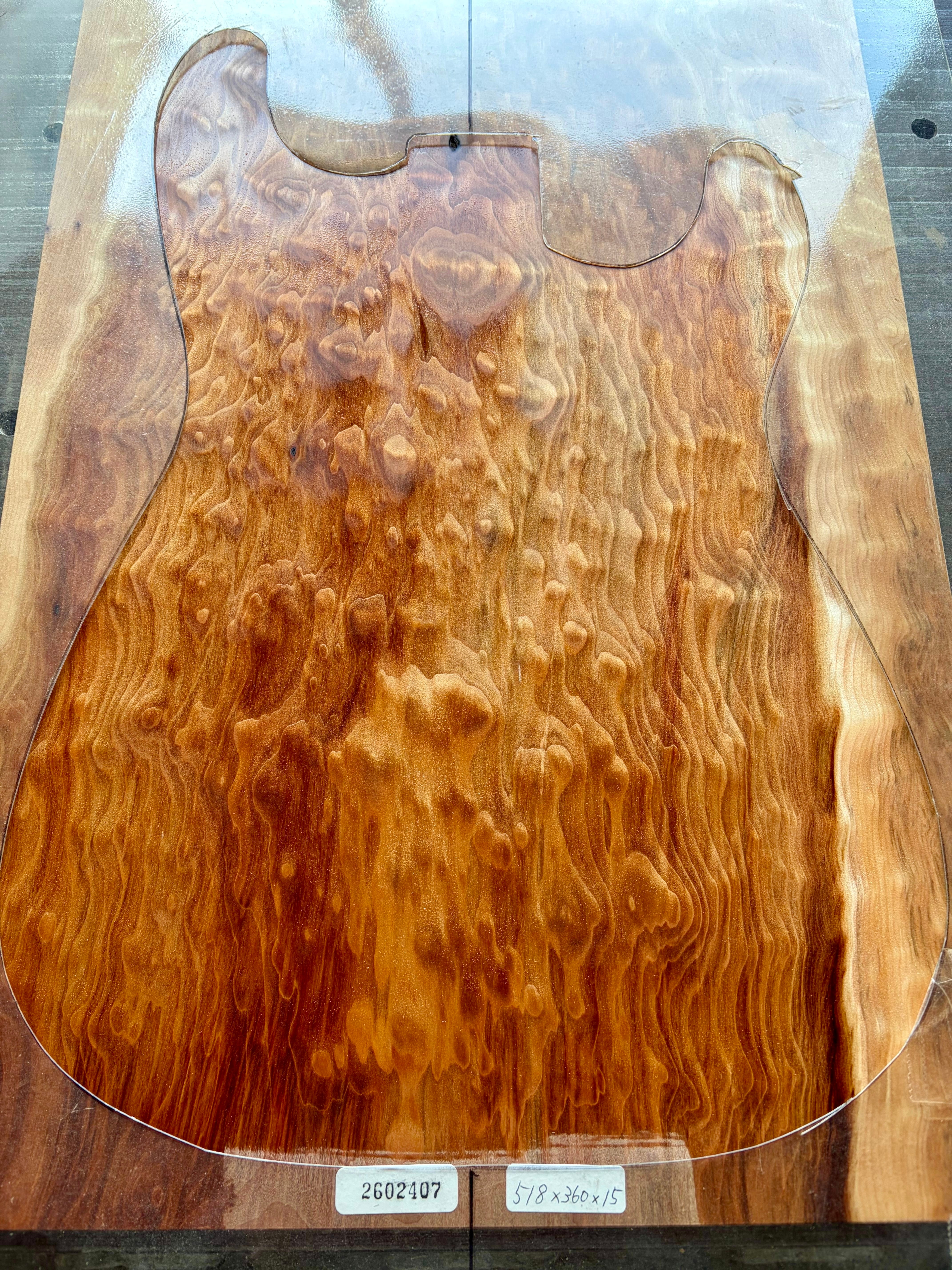 ボディTOP用材(15mm厚) - 緋桂(キルト1P) 2602407