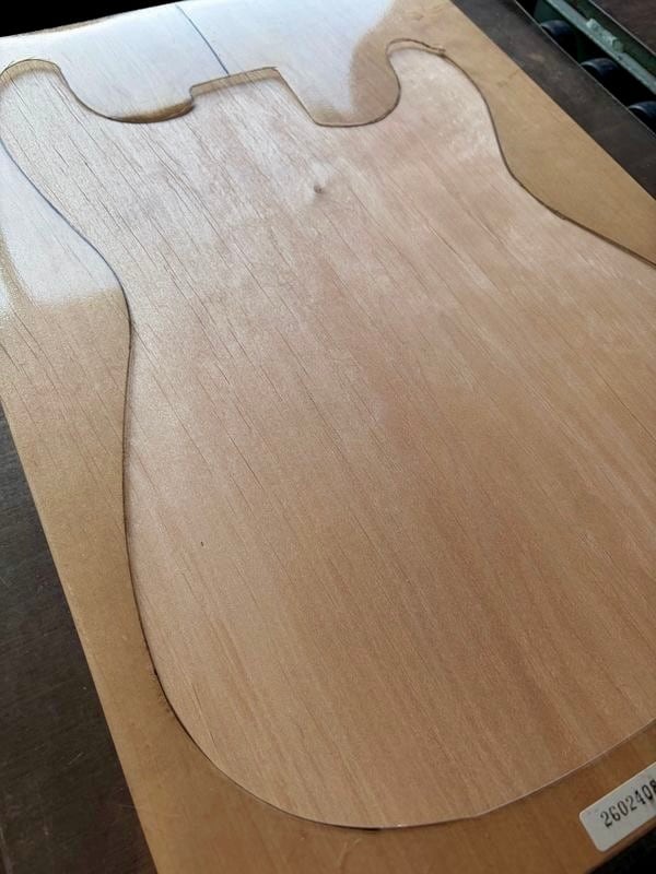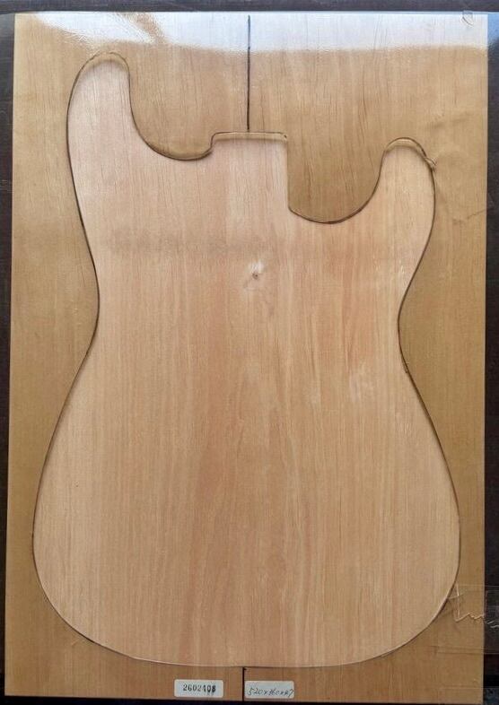 道産アルダー(ヤチハン)板目2Pセンターブックマッチのボディ用材です。